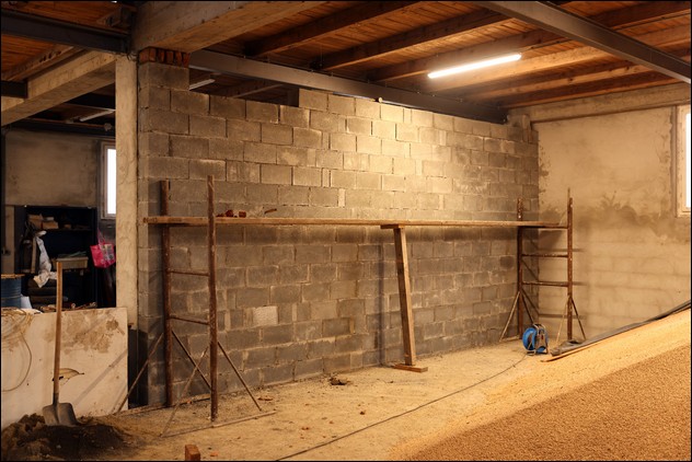 In en rondom de schuur achter Rehoboth is sinds het vorige werkbezoek veel gebeurd: de in oktober gerooide coniferen zijn opgeruimd en alles ligt gereed om een schutting te zetten tussen het perceel van Rehoboth en dat van de buurman. Verder is er in de schuur een muurtje gebouwd om scheiding te maken tussen de opslag van landbouwproducten en een technische ruimte.