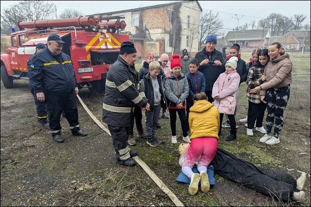 Onder toeziend oog van een schoolklas werd er een brandweeroefening gehouden in een vervallen theater. Hierbij werd de klas ook gedemonstreerd hoe een reanimatie in zijn werk gaat. De kinderen mochten het ook zelf doen. Is er nog een gesprek met de burgemeester geweest. Op de terugweg zijn ze nog op bezoek geweest bij de brandweer van Vylok waar ze een rondleiding kregen.