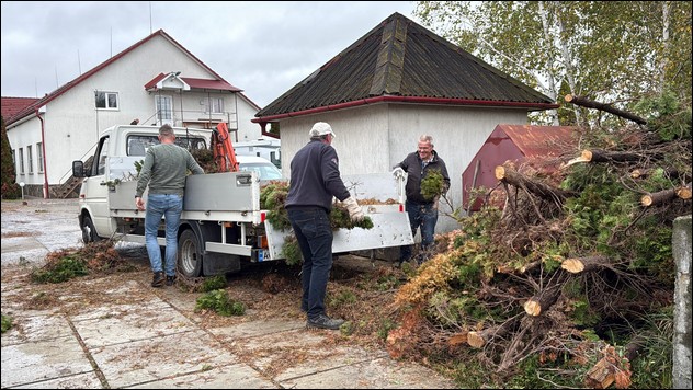 Verder wordt een aanvang gemaakt met het ruimen van de coniferenhaag rondom het terrein van Rehoboth. Deze coniferen zijn ziek en moeten geruimd worden. Later zal hier een andere ‘groene schutting’ worden geplant. Ook dit blijkt een behoorlijk intensief karwei waarbij de motorzaag en de tractor goede diensten bewijzen. Vanwege de regen moest hier vroegtijdig mee worden gestopt.