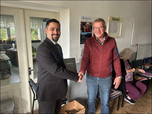 Stichting OZO kreeg tijdens de dienst een prachtig gedenkbord overhandigd wat een plaatsje krijgt in het kantoor van Rehoboth. Na de dienst stond er een maaltijd gereed waarvoor alle kerkgangers waren uitgenodigd. De mensen van Stichting OZO kwamen niet met lege handen, want ze konden ds. Sóos een aantal Bijbels met grote letters (voor slechtzienden) overhandigen in het Hongaars en Oekraïens en ook enkele kinderbijbels in de Oekraïense taal. Deze werden met grote dank ontvangen door de predikant. De jonge predikant liet ook zijn zelfgemaakte ‘zitje’ zien achter de pastorie, waar gemeenteleden terecht kunnen voor een lekkere pizza, gebakken in de door hemzelf gemaakte pizza-oven. De opbrengst van de pizza’s zijn bestemd voor de kerk of andere goede doelen. Bij het afscheid werd de jonge enthousiaste predikant er opnieuw op gewezen dat hij altijd een beroep op Stichting OZO kan doen wanneer er behoeften zijn bij het werk onder de allerarmsten in zijn gemeente.