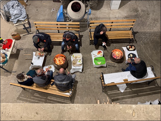 In de middag waren de twee tractorchauffeurs van Rehoboth, Latzy en Ferri, begonnen met het bereiden van weer een typische streekmaaltijd. De volledig huisgemaakte goulash smaakte voortreffelijk, evenals het door Erzsó gemaakte dessertgebak. Een waardige maaltijd voor deze -voorlopig- laatste avond in Oekraïne.