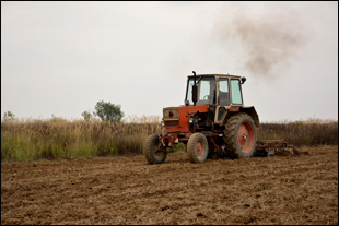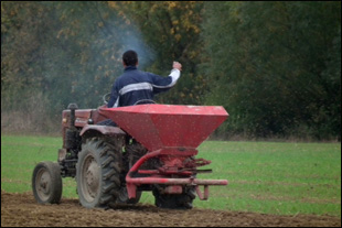 In de middaguren werd een bezoek gebracht aan de akkers. János was hier bezig met het zaaien van wintertarwe. Met verbazing werd de - in Flakkeese ogen – primitieve manier van het bewerken van het land bekeken. De tarwe werd gezaaid met een kunstmeststrooier, maar chauffeur (János) zaaide vanaf de bestuurdersplaats ook met de hand mee. Het valt op dat de meeste akkers nauwelijks geploegd worden en het gebruik van een schudeg komt ook maar zeer sporadisch voor. Bijzonder is verder dat, ondanks de armoede, er nog veel grond braak ligt. Deze grond zou ‘eenvoudig’ tot goede landbouwgrond kunnen worden gemaakt. Maar het gebeurt niet.