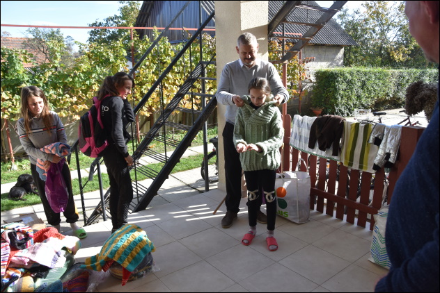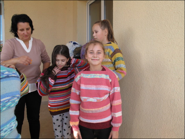Naast wat houdbare voedingsmiddelen, Bijbels-kindermateriaal en Bijbels, was er een flinke voorraad gebreide truien en dekens die konden worden overhandigd. Truien die door verschillende vrouwen van het eiland zijn vervaardigd en dekens die gebreid zijn door vrouwen van de PKN-kerk in Oudenhoorn. De truien werden door de kinderen -die niet gewend zijn om nieuwe kleren te krijgen- met veel enthousiasme gepast en meegenomen. De wat oudere pubers waren eerst wat afzijdig maar later bleek dat zij ook dankbaar de gebreide kledingstukken showden en aanvaarden. Kleding die ongetwijfeld hun nut zullen bewijzen in de komende winter waarin maar weinig energie voor verwarming beschikbaar zal zijn...