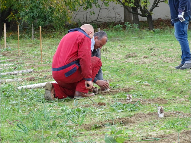In de middag werd een kort bezoek aan ‘de farm’ gebracht. Deze boerderij wordt geëxploiteerd door de mensen van OZO. Momenteel is het wat rustiger op de boerderij, maar men heeft in de afgelopen week de wintertarwe gezaaid en voor de komende week staat het dorsen van mais -met de eigen combine- op het programma. Op de boerderij worden er naast de andere activiteiten ook varkens gehouden. De laatste tijd zijn er een flink aantal biggen geboren en zijn er biggen van collega boeren aangekocht, waardoor er nu maar liefst 92 varkens, groot en klein de boerderij aan de rand van Nagydobrony bevolken. Deze dieren worden natuurlijk voor het vlees gehouden. De opbrengst hiervan en ook van de boerderij komt uiteraard ten goede aan de andere projecten van Stichting OZO.