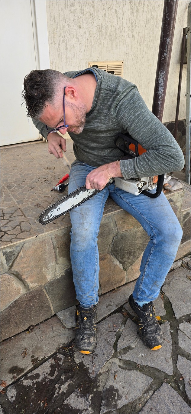 Teruggekomen bij Rehoboth werd het ‘werkpak’ weer aangetrokken, de kettingzaag ter hand genomen en werd de coniferenhaag weer verder gerooid.