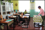 Verder zag het schooltje er netjes en onderhouden uit. Er klopte een warm hart voor de jeugd en dat was aan alles te merken. Maar geen verwarming bij -25°C. U zult begrijpen: zes nieuwe eenvoudige houtkachels heffen dit probleem op. Een andere optie is er niet, want elektriciteit is duur en gasaanvoer is niet aanwezig. Iemand uit het dorp heeft ervaring en wil de kachels, in het belang van de school, voor een vriendenprijs maken.