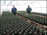 Wie vanuit het westen Nagydobrony binnenkomt ziet meteen aan de linkerkant een zijstraatje. Na zo’n tweehonderd meter bevindt zich de boerderij. We mogen terugzien op een goed jaar, ondanks een kurkdroog voorjaar. Ook de zomer was heet en droog. Toch zorgden de spaarzame regenbuien en dagelijks beregenen voor een goede aardappelopbrengst. Wat het beregenen betreft komen de enorme verschillen in Oekraïne weer aan het licht. Een enkele ‘rijke’ boer heeft de beschikking over een heuse beregeningsinstallatie, maar de meeste boeren moeten zich behelpen met inferieur materiaal. Als het aan alles ontbreekt is er altijd nog de tuinslang... De vlees- en handelsprijzen voor varkens en koeien waren erg instabiel, maar over het gehele jaar redelijk goed te noemen. Het paradepaardje van de boerderij is echter de tuinbouw. Met de verwarmde opkweekkassen en doorgroeikassen is een prima resultaat behaald, zowel qua opbrengst als prijs, mede dankzij de toepassing van biologische grondontsmetting. Gezien het succes van dit onderdeel zou voor de toekomst de uitbreiding van het aantal kassen wel eens tot de mogelijkheden kunnen gaan behoren.