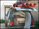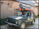 In de polikliniek wordt momenteel verder gewerkt aan de watervoorziening. Materialen worden in een nabijgelegen stad gekocht. Op de foto de Niva van St. OZO afgeladen met bouwmaterialen.